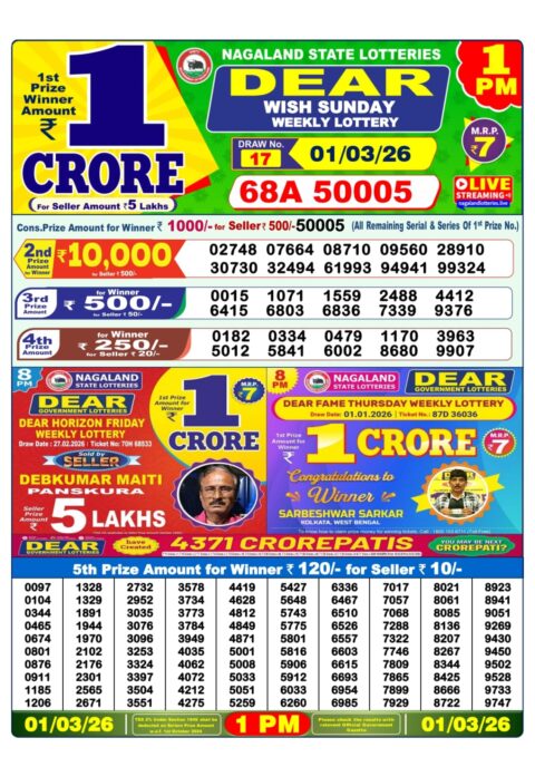 Lottery Sambad 1 PM Result 01 03 26 – Dear Morning