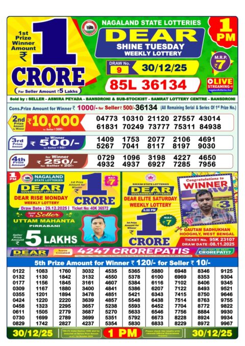 Get the latest Lottery Sambad 1 PM result updates including Dear Morning draw details. Check today’s winning numbers, result timings, and recent 1 PM Lottery Sambad results in one place.