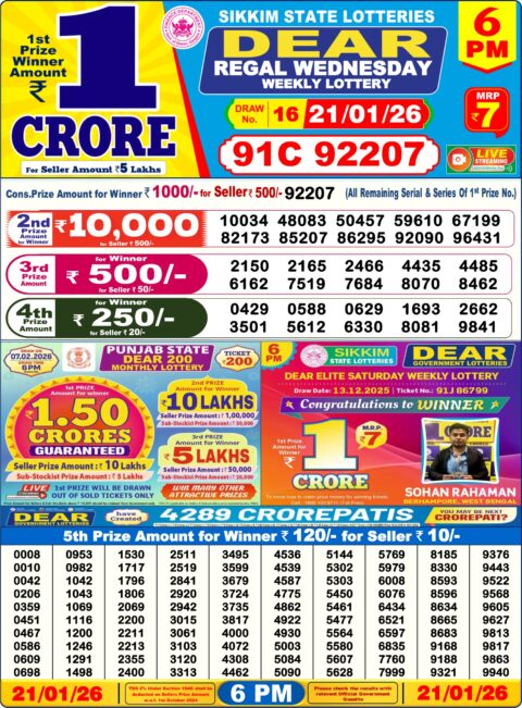 Dear Lottery Sambad 6 PM Result 21 01 26 – Sikkim State