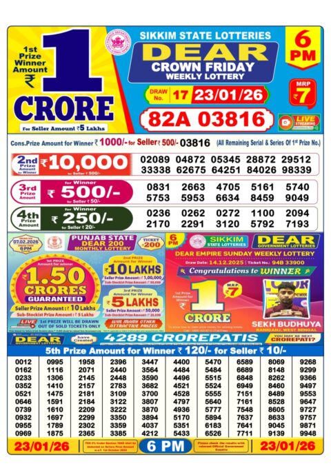 Dear Lottery Sambad 6 PM Result 23 01 26 – Sikkim State