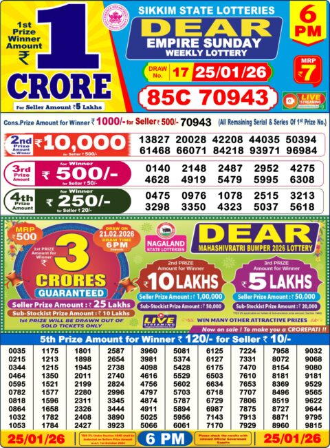 Dear Lottery Sambad 6 PM Result 25 01 26 – Sikkim State