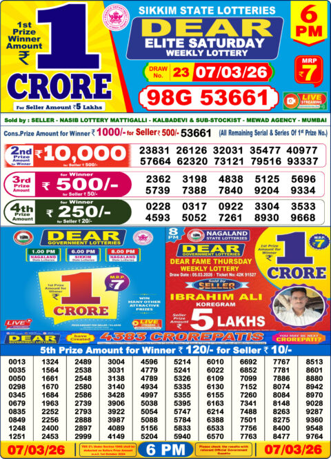 Dear Lottery Sambad 6 PM Result 07 03 26 – Sikkim State