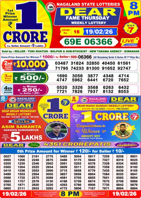 Lottery Sambad 8 PM Result Today 19 02 26 Dear Night